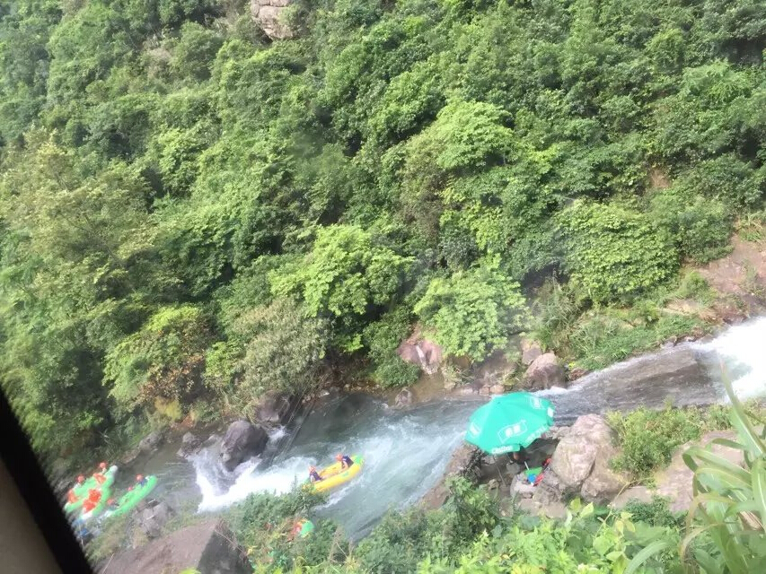After arriving there, we firstly had a hearty meal, and of course, we enjoyed the famous local chicken. With good lunch, we had full of energy for water fight. We looked forward to having a happy time at Huanglong Gorge where is exciting to have whitewater rafting as introduced by the guide. We were so eager to dive into the water to avoid such boiling hot weather that we wolfed down just in two minutes.